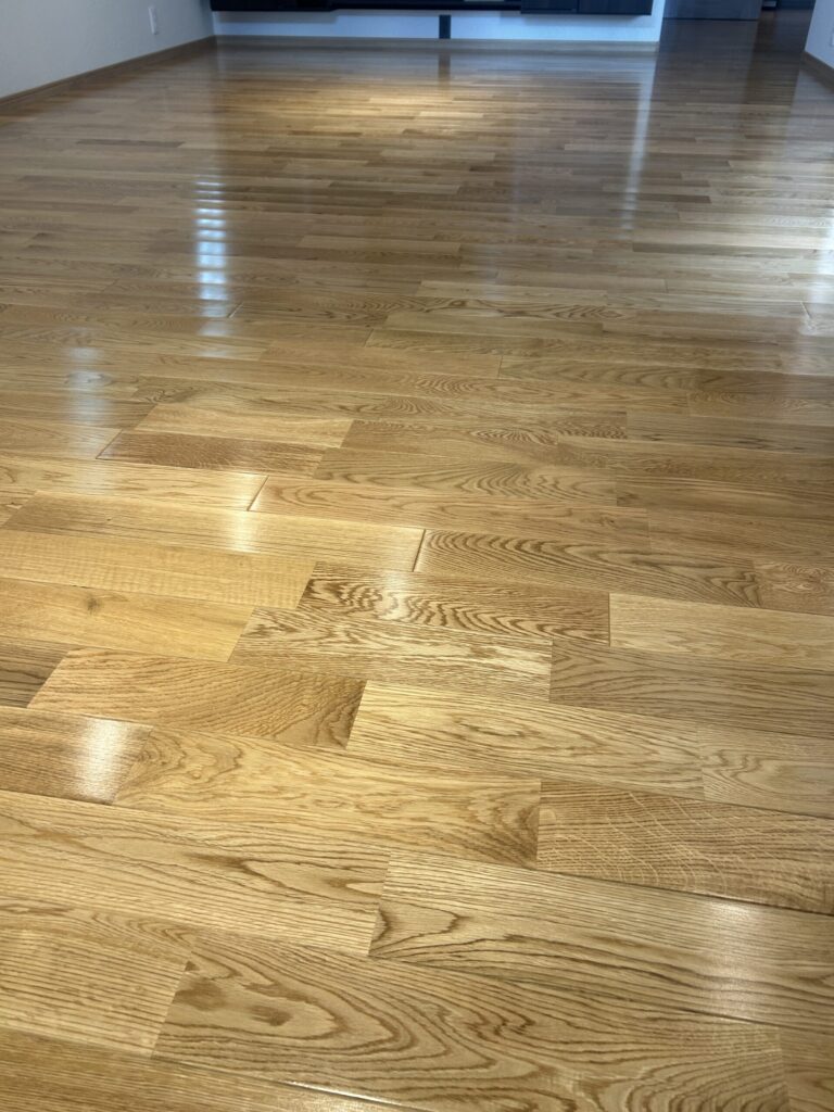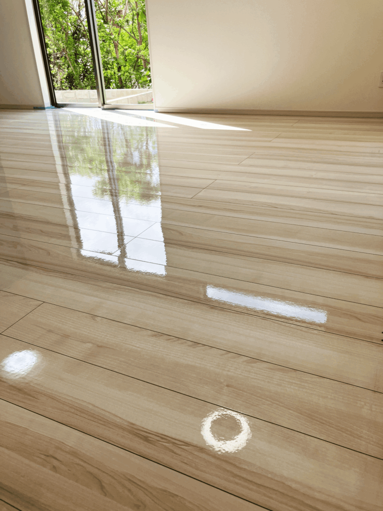 一方で、床色が明るい場合は思ったよりツヤ感が目立ちにくいこともあります。