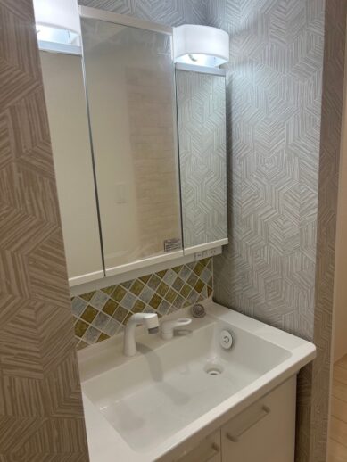 施工場所 京都府宇治市 工法 アクセントクロス・モザイクタイル 面積 洗面台