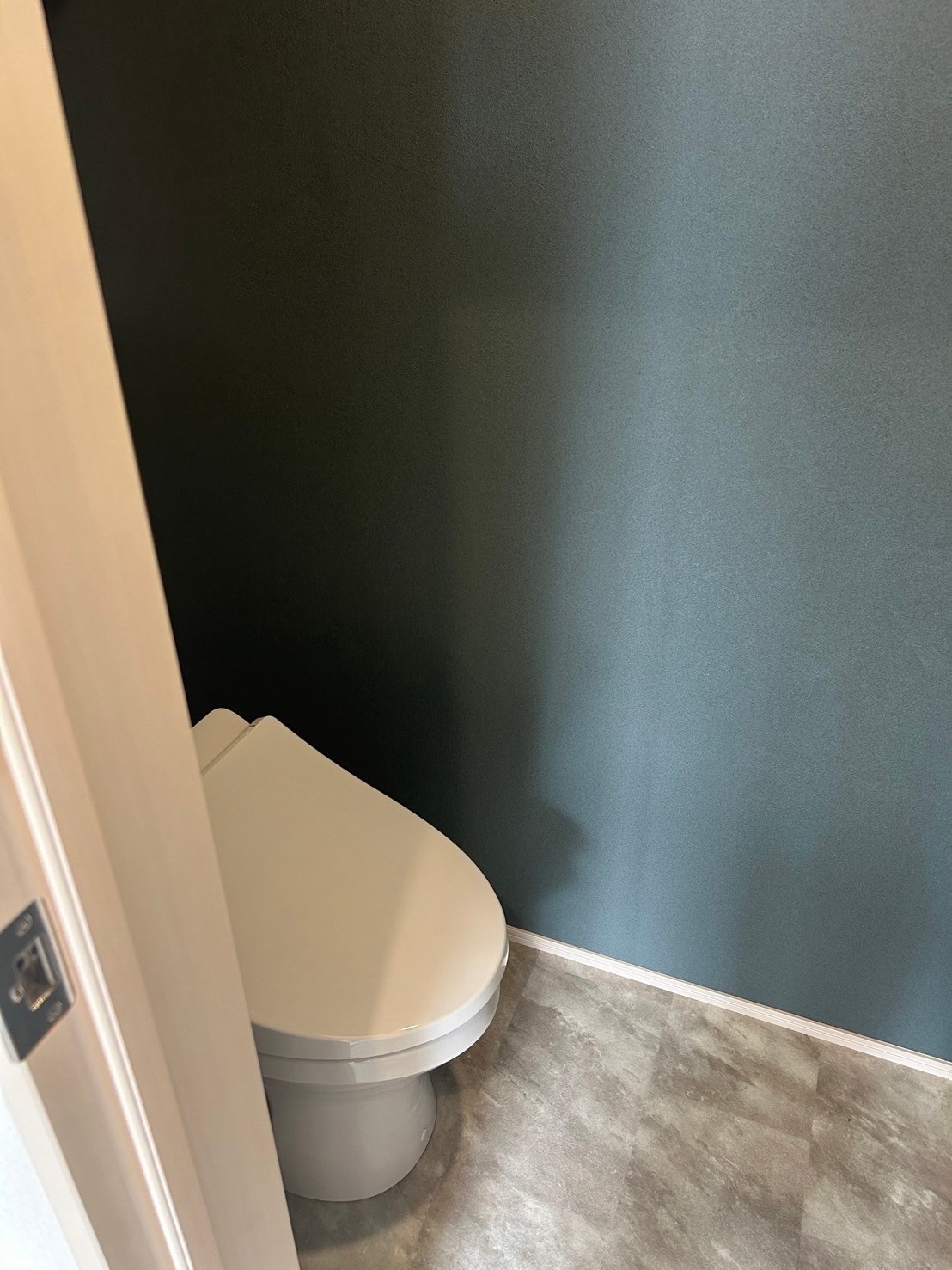 住みながらのリフォームでしたが、思っていた以上にスムーズでした。床の柄が上品で、濃いクロスとの組み合わせがすごく気に入っています。狭い空間なのに奥行きが出て、トイレに入るたびに気分が上がります。雰囲気を変えたい方におすすめです!
