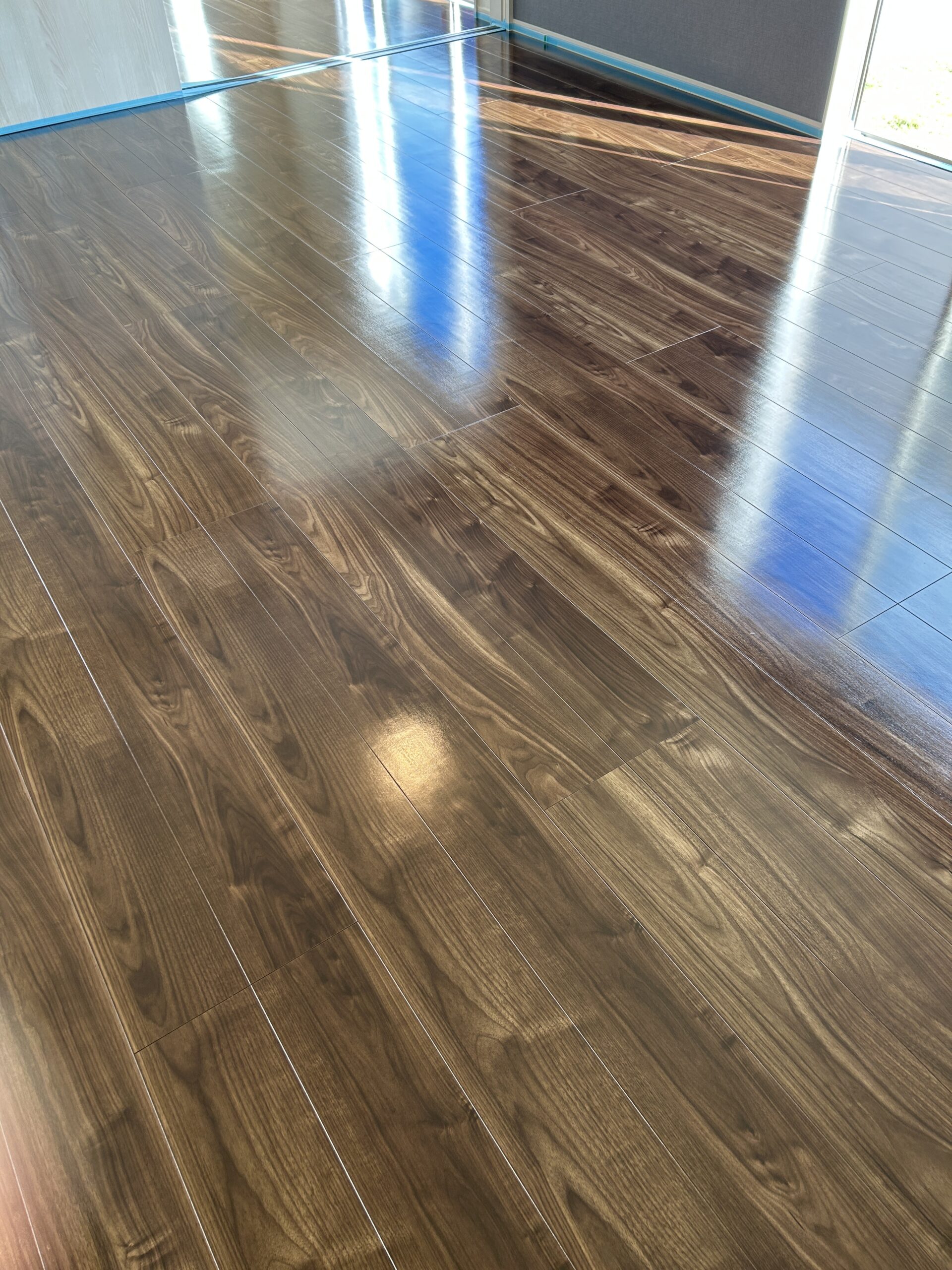 小さい子供がいるので、傷や汚れがつきにくい床にしたいと思ってお願いしました。仕上がりを見てびっくり!光沢がきれいで家全体が明るく感じます。職人さんもとても感じがよく、作業後の確認も一緒にしてくださって安心できました。子供が床におもちゃを落としてもキズつかず、掃除もラクで本当に助かっています。