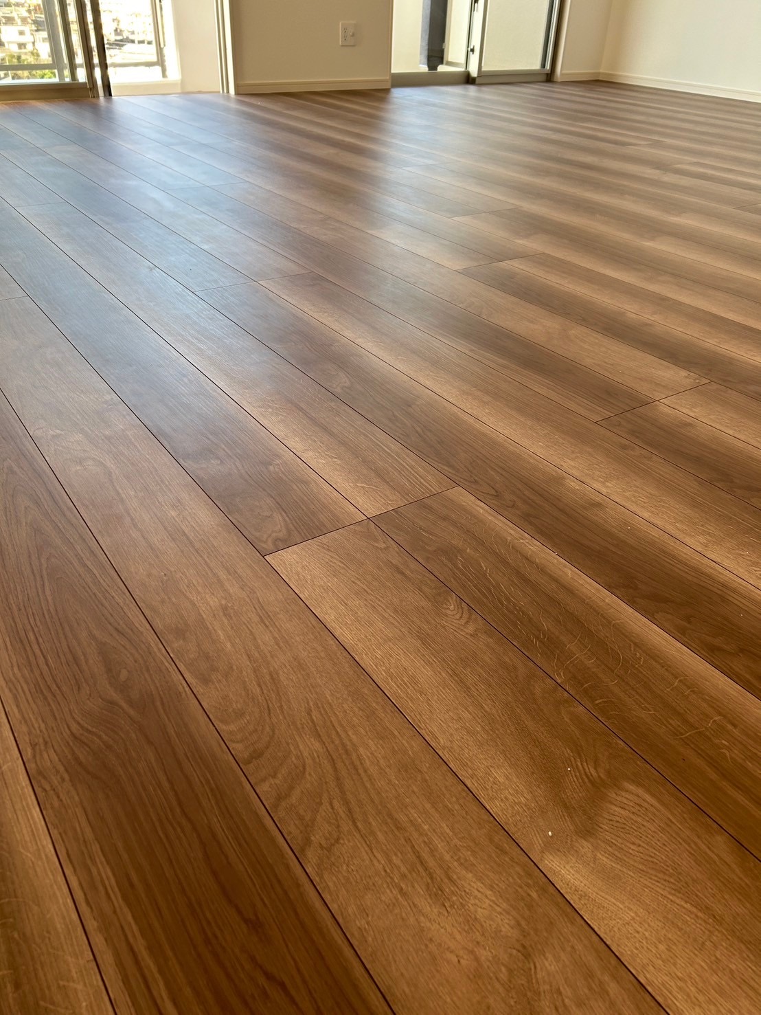 写真で見るよりも実際のツヤ感がすごくキレイで驚きました。フローリングの色味がより明るく見えて、部屋全体が広く感じます。妻が毎日の掃除もしやすくなりとても喜んでいます。担当してくれた職人さん、ありがとうございました。
