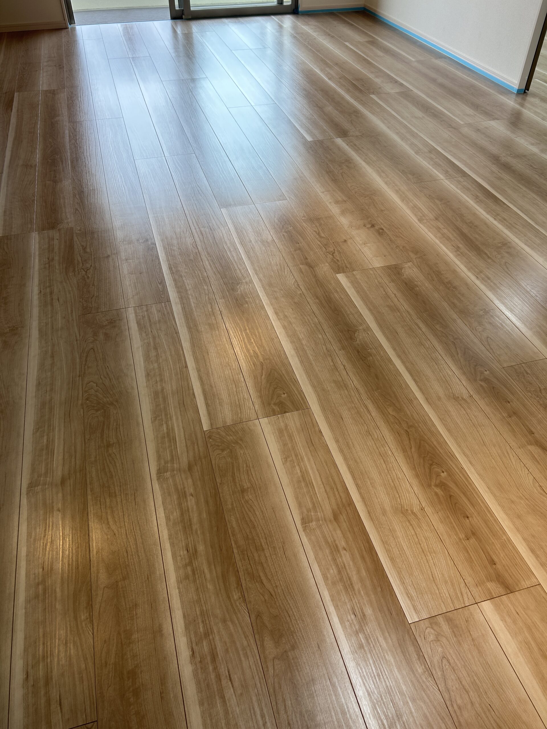 ツヤがありすぎない自然な仕上がりでとても満足しています。朝の光が差し込むと、床がきれいに輝いて気持ちがいいです。掃除もラクになり、子どもが食べこぼしてもすぐに拭けるのが嬉しいです。家全体が明るくなって、新築らしさがより引き立ちました。