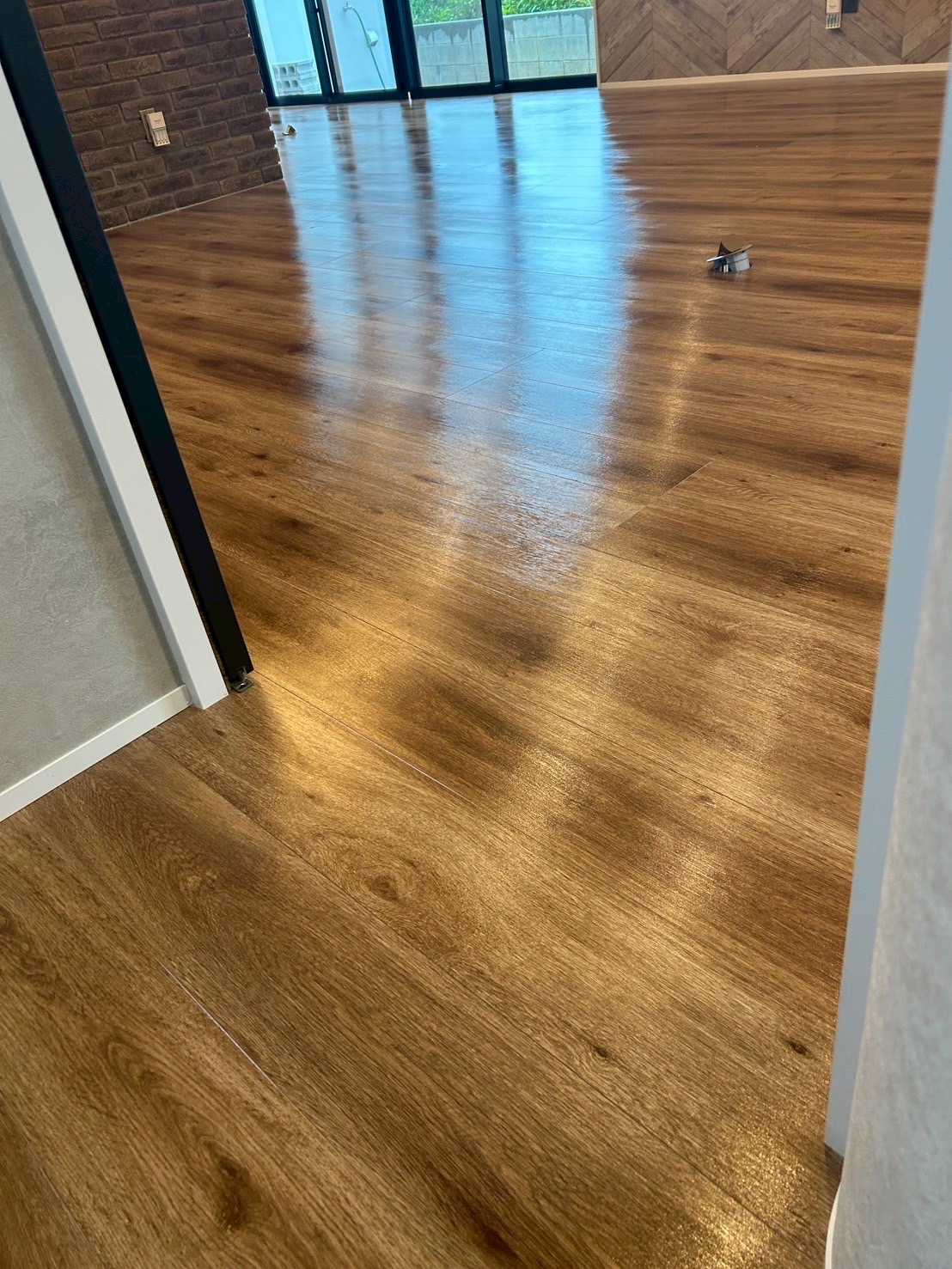 新築の床を長くきれいに保ちたくてお願いしました。思っていた以上に光沢があり、部屋全体が明るく見えて満足です。また滑りにくいので快適に過ごせそうです。高級感が増して、やってみて本当に良かったです。