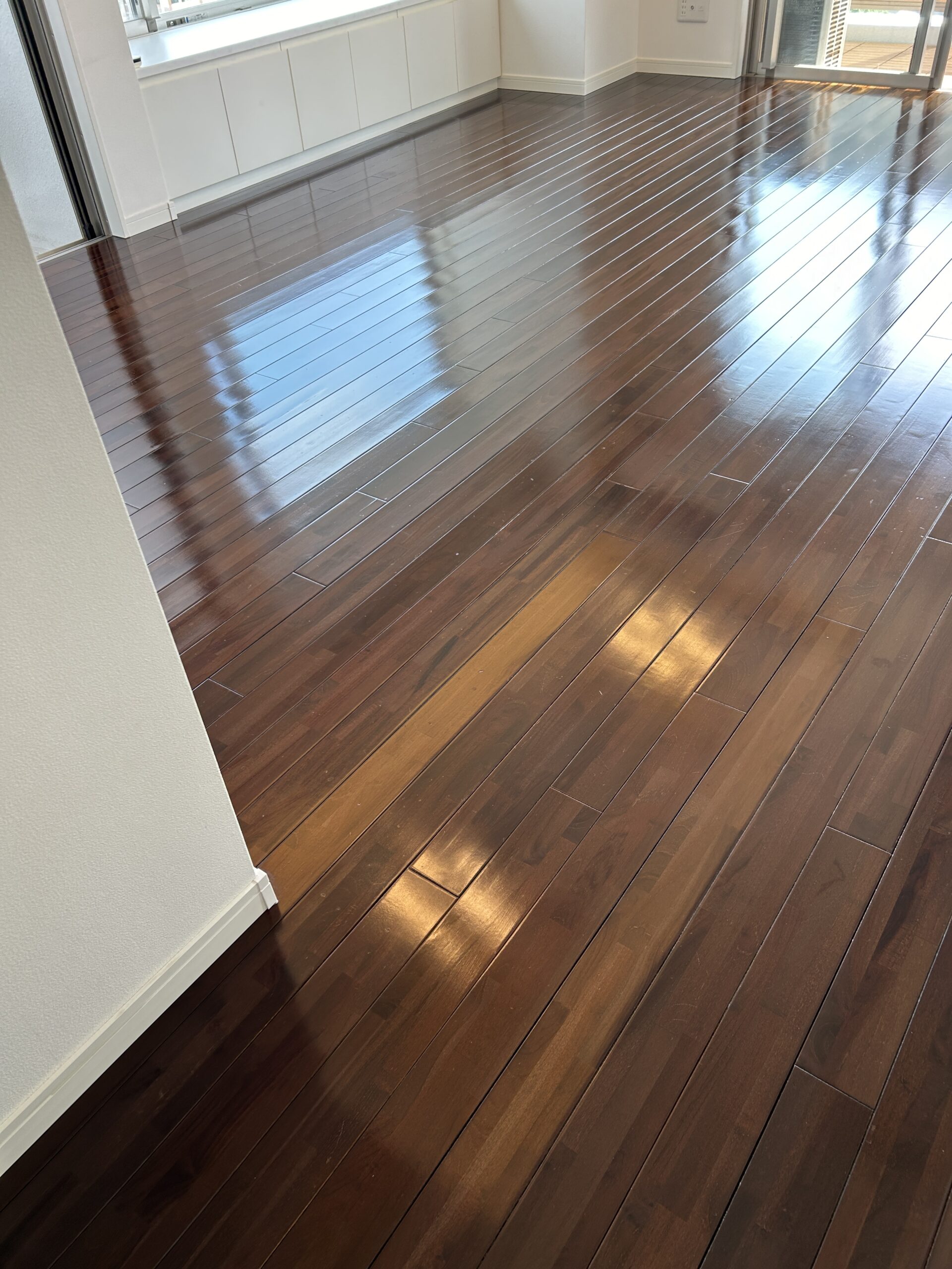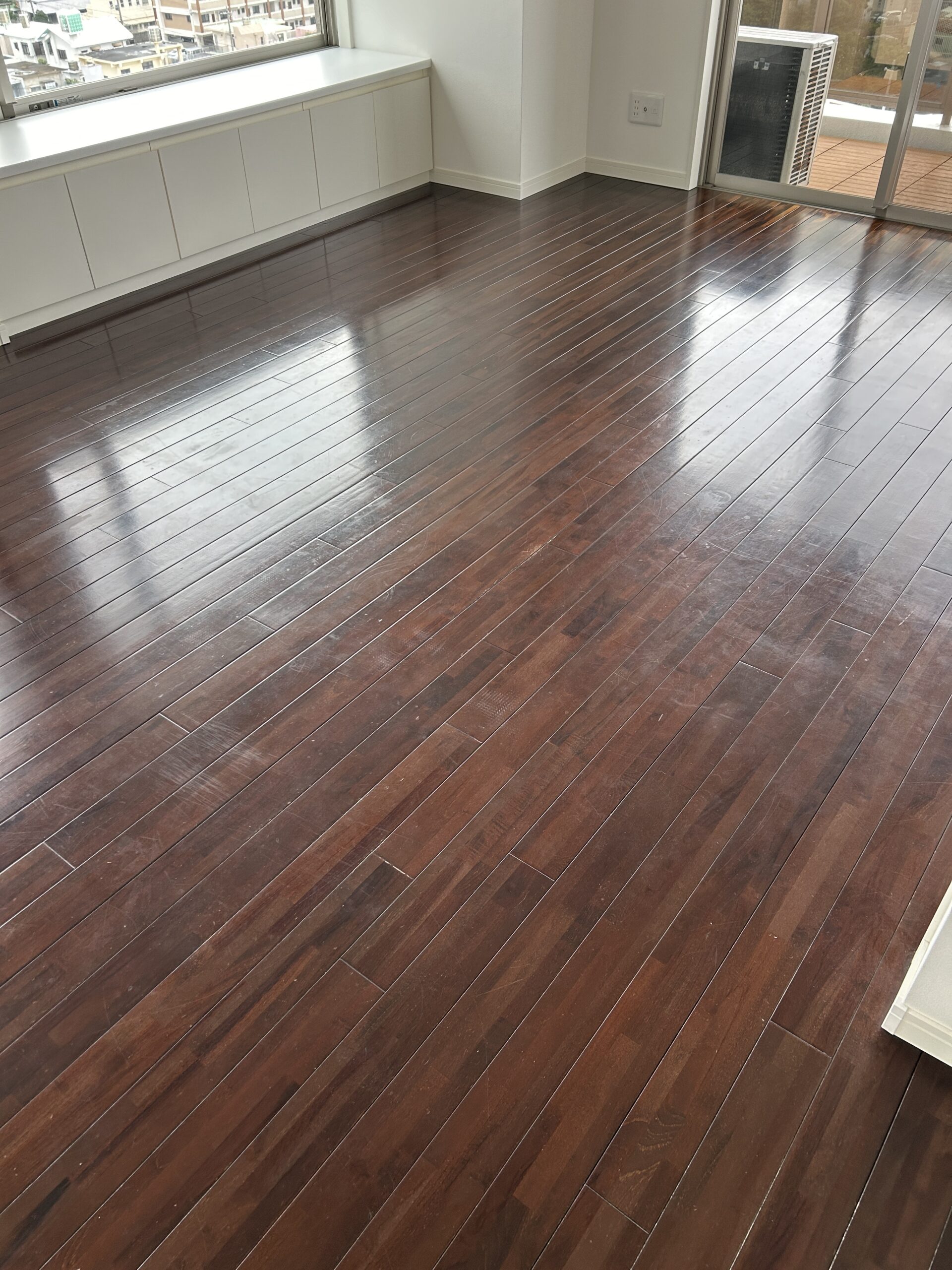 入居して数年経ち、床のツヤが落ちてきてたのが気になっていました。作業中も家具の扱いが丁寧で、安心してお願いできました。コーティング後は上品な艶が出て、毎日床を見るたびに気分がいいです。光沢がありながら落ち着いた雰囲気で、とても気に入っています。