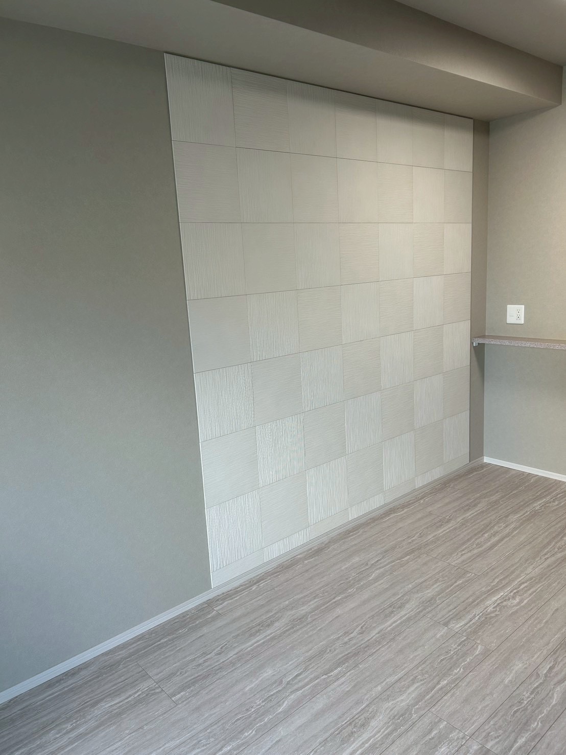 この度はエコカラット"たけひご"をご依頼いただきありがとうございます。たけひごは縦のラインがきれいに出るため、光の入り方や照明との相性をみながら貼り付け位置を調整しました。調湿効果や脱臭効果も高く、デザインだけでなく機能面でもメリットが多いです。気に入っていただけて大変嬉しく思います。