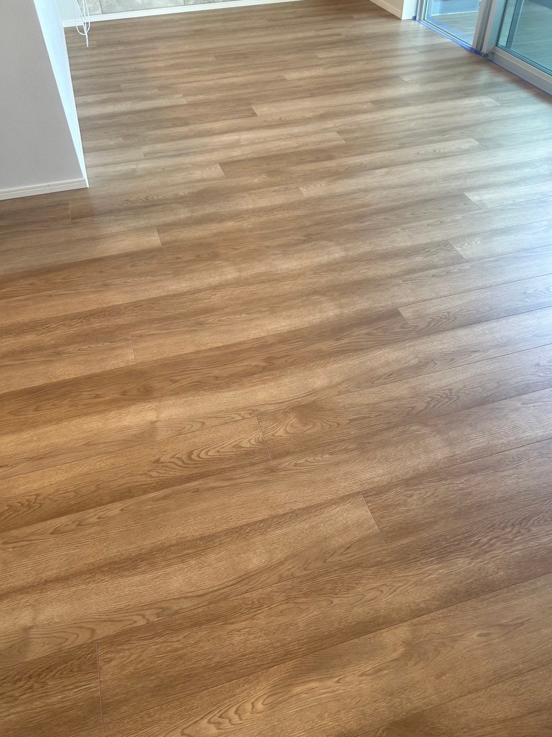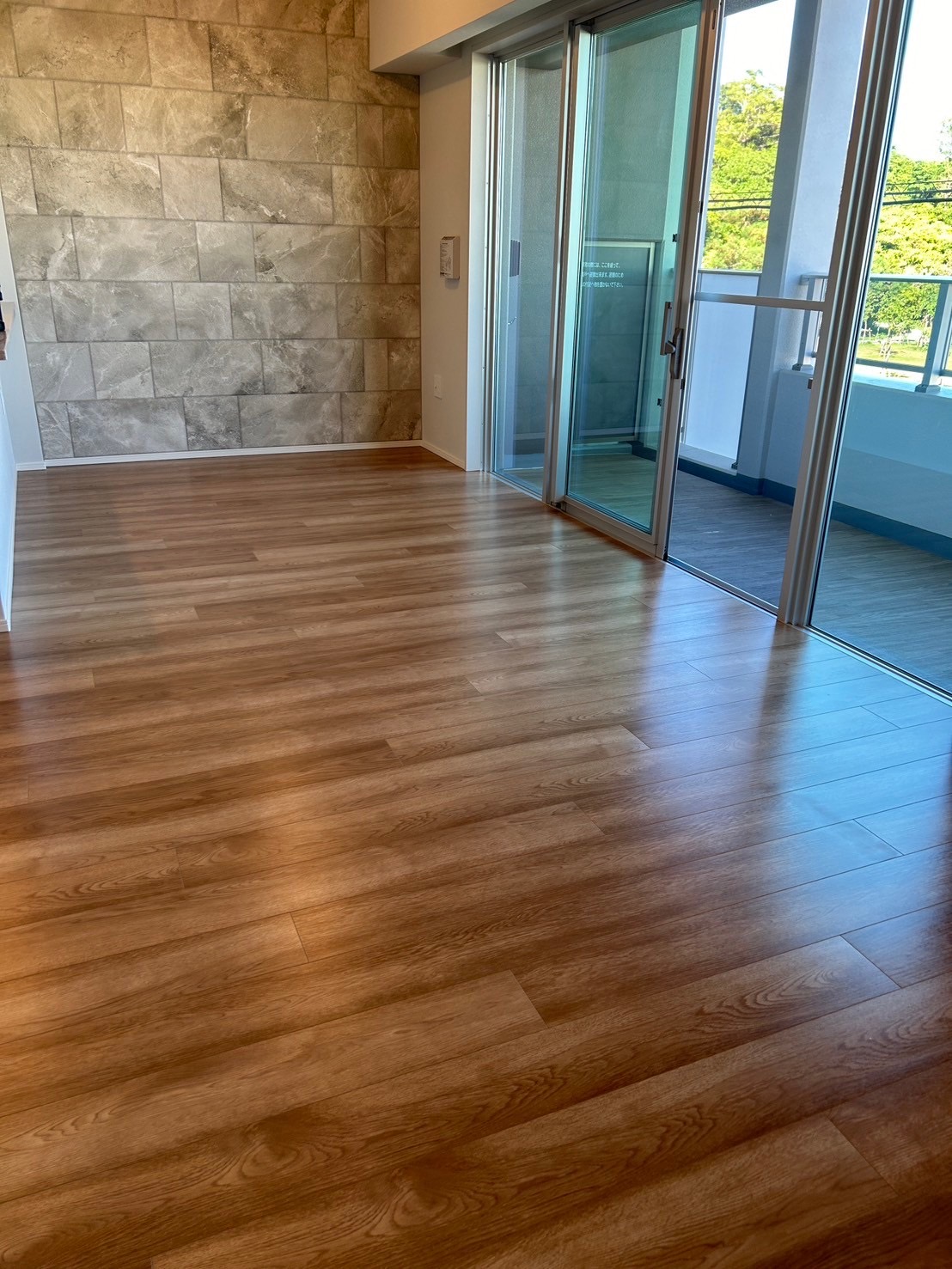 新築のリビングをもっと雰囲気よくしたくて、床はガラスコーティング、壁はエコカラットのサンティエでお願いしました。ガラスコーティングは主張しすぎない自然なツヤで、フローリングの木目がキレイに見えるようになり、部屋が明るく広く感じます。サンティエはもともと気になっていたエコカラットで、フロアコーティングと組み合わせて一気に高級感が出てとても気に入りました!丁寧に施工してくださりありがとうございました。