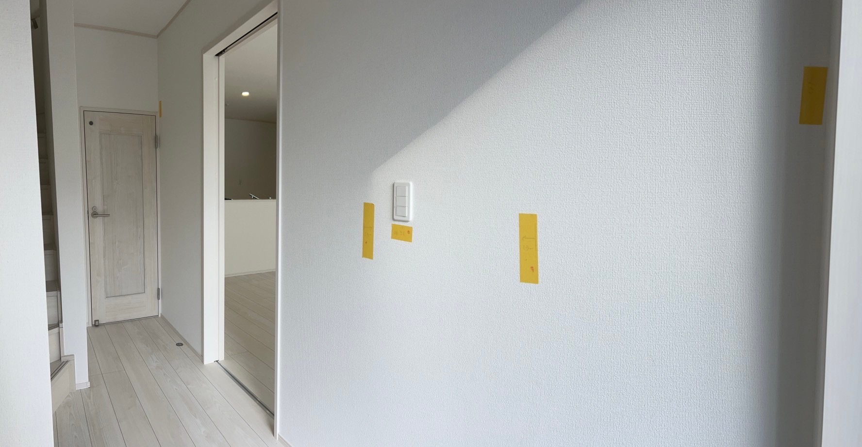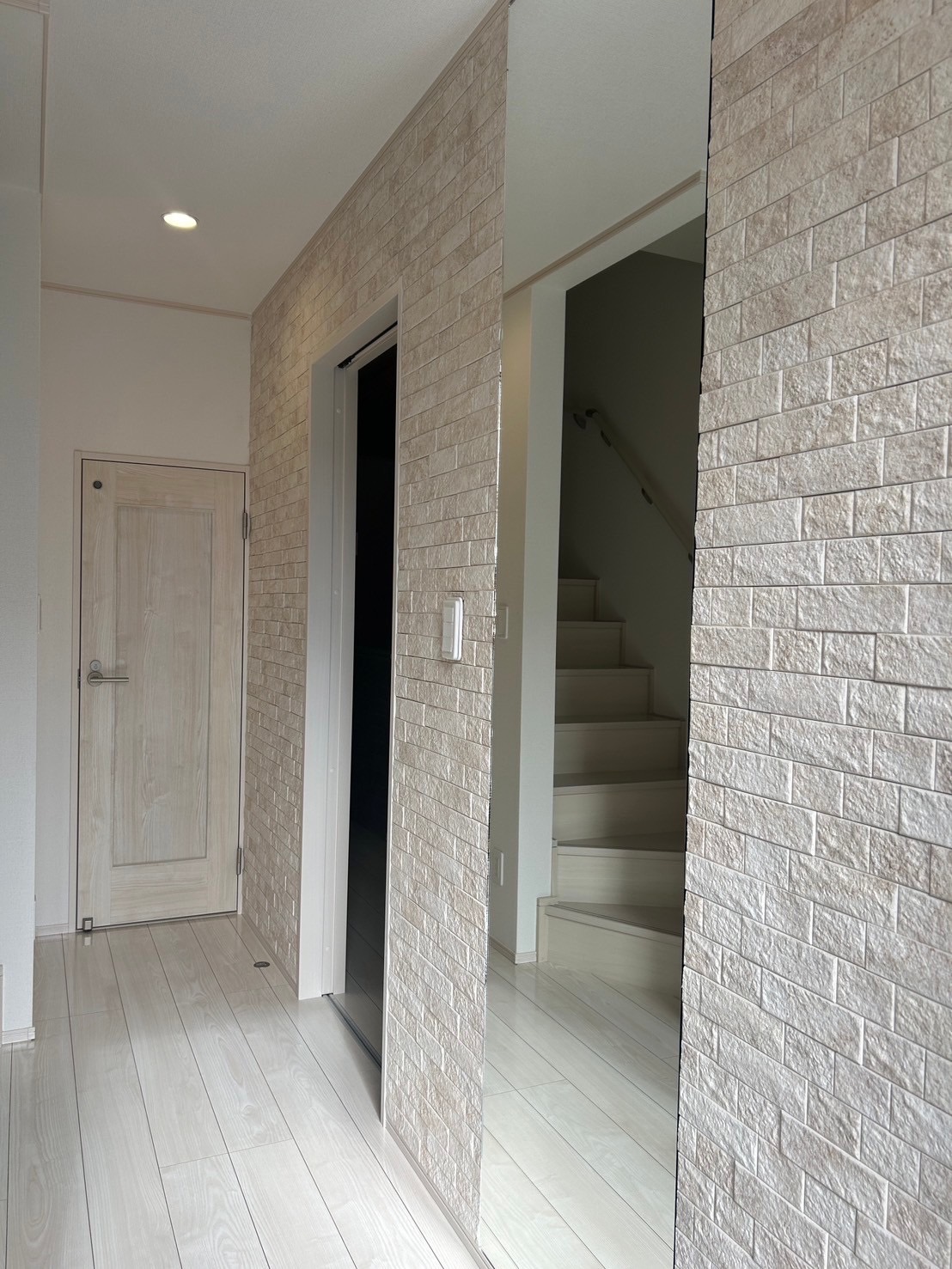 お客様にお選びいただいたエコカラットとミラーを、玄関の光の入り方に合わせて配置しました。素材の質感を活かしながら、明るさと奥行きを感じられるように仕上げています。シンプルで上品な玄関空間になりました。