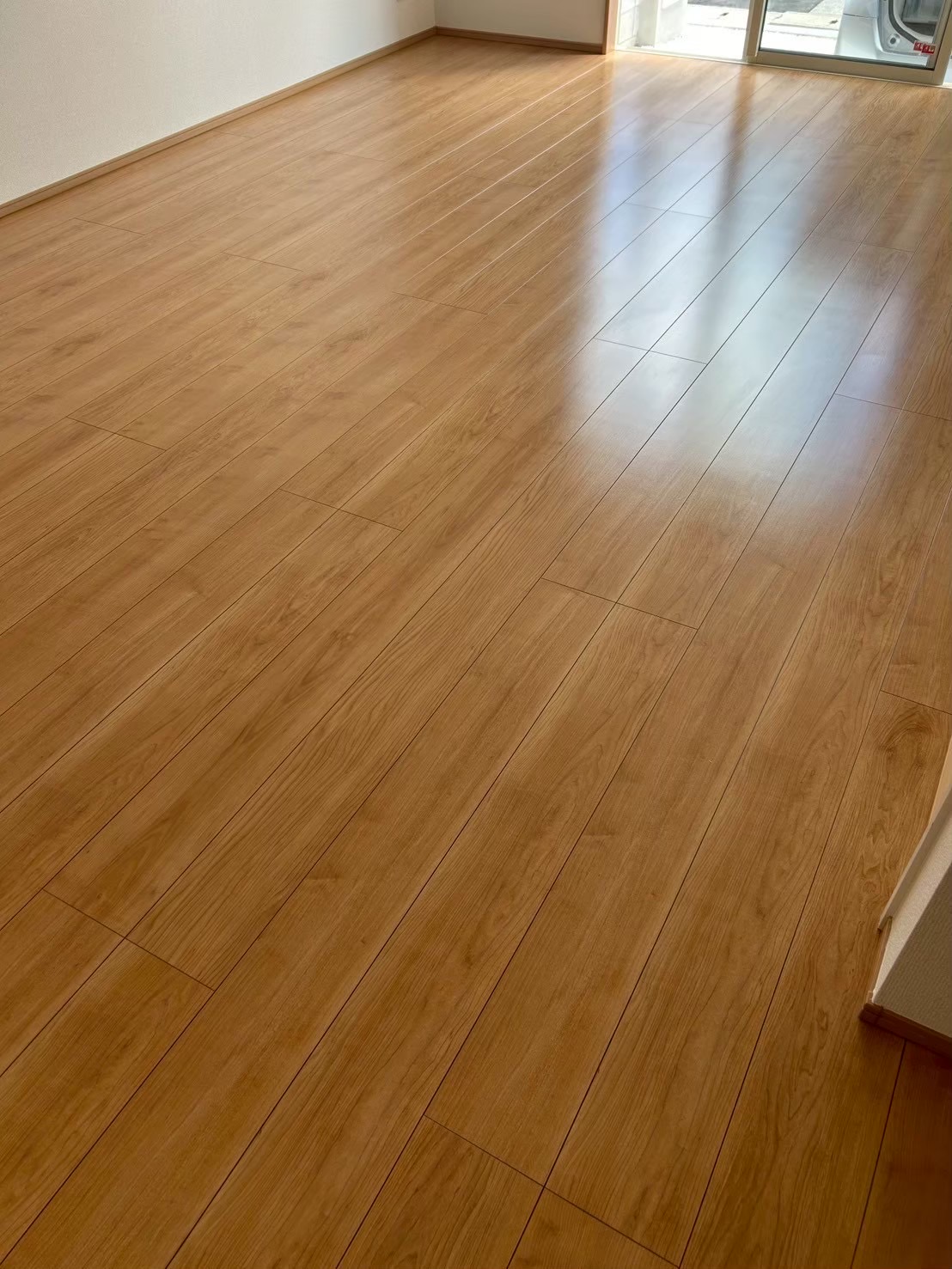新築のタイミングでお願いしました。想像していたよりも自然な艶で、床の色味がより引き立っています。掃除もしやすく、汚れやキズも気になりにくくなりました。担当してくださった職人さんに感謝です!