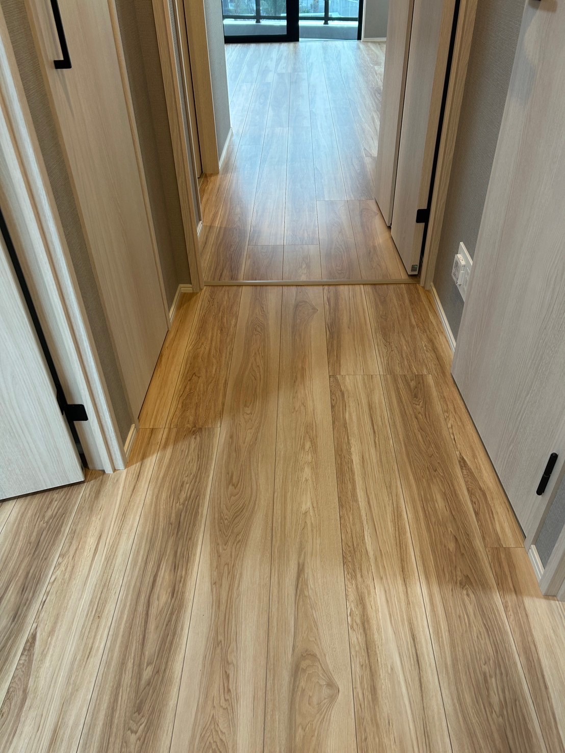 リビングを明るく見せたくてUVコーティングを選びました。完成した床は光沢がとても美しく、照明の写り込みも上品で満足です。